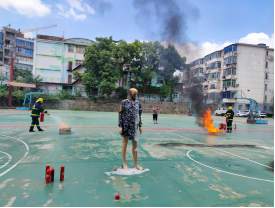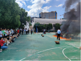 签约仪式之后,参会人员及药生学院部分学生代表在浔东校区西区篮球场观看了江西欧博植物型水基消防器材的灭火演示。